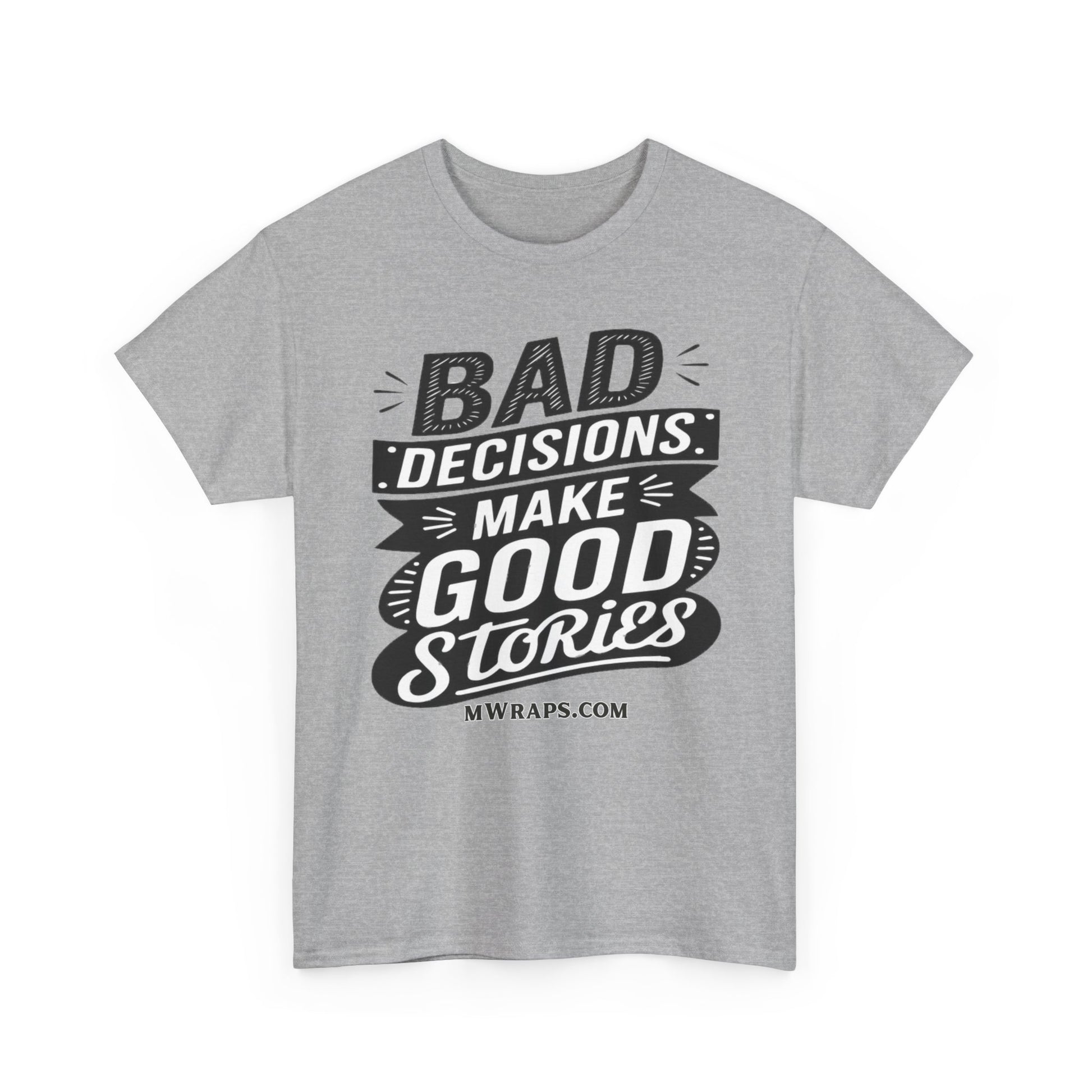 "Bad Decisions Make Good Stories" Graphic T-Shirt – Vintage Style Funny Quote Tee