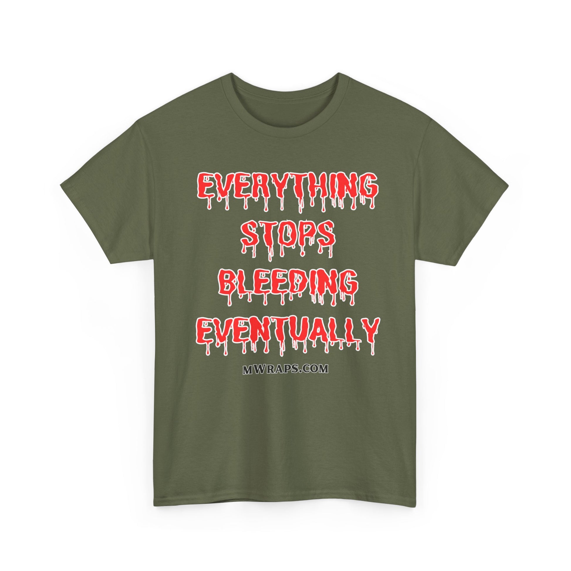 "Everything Stops Bleeding Eventually" Funny EMT Nurse Paramedic T-Shirt – Blood Drip Font Graphic Tee