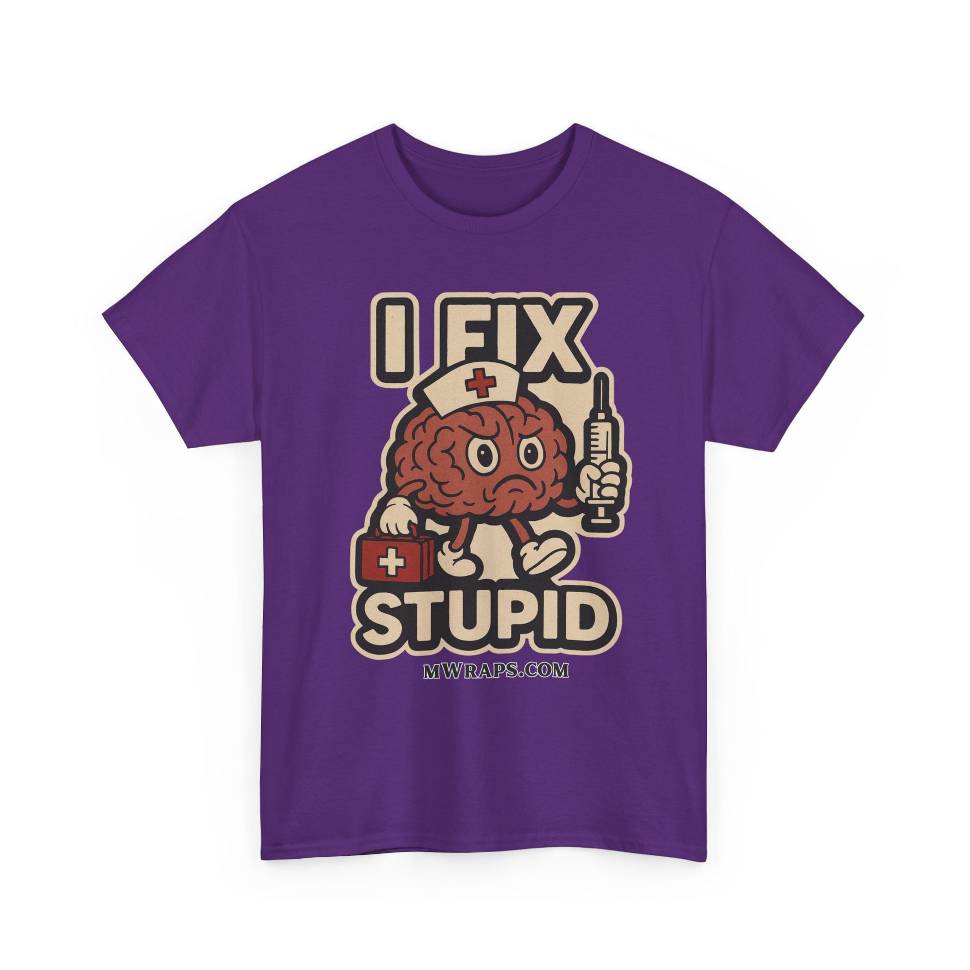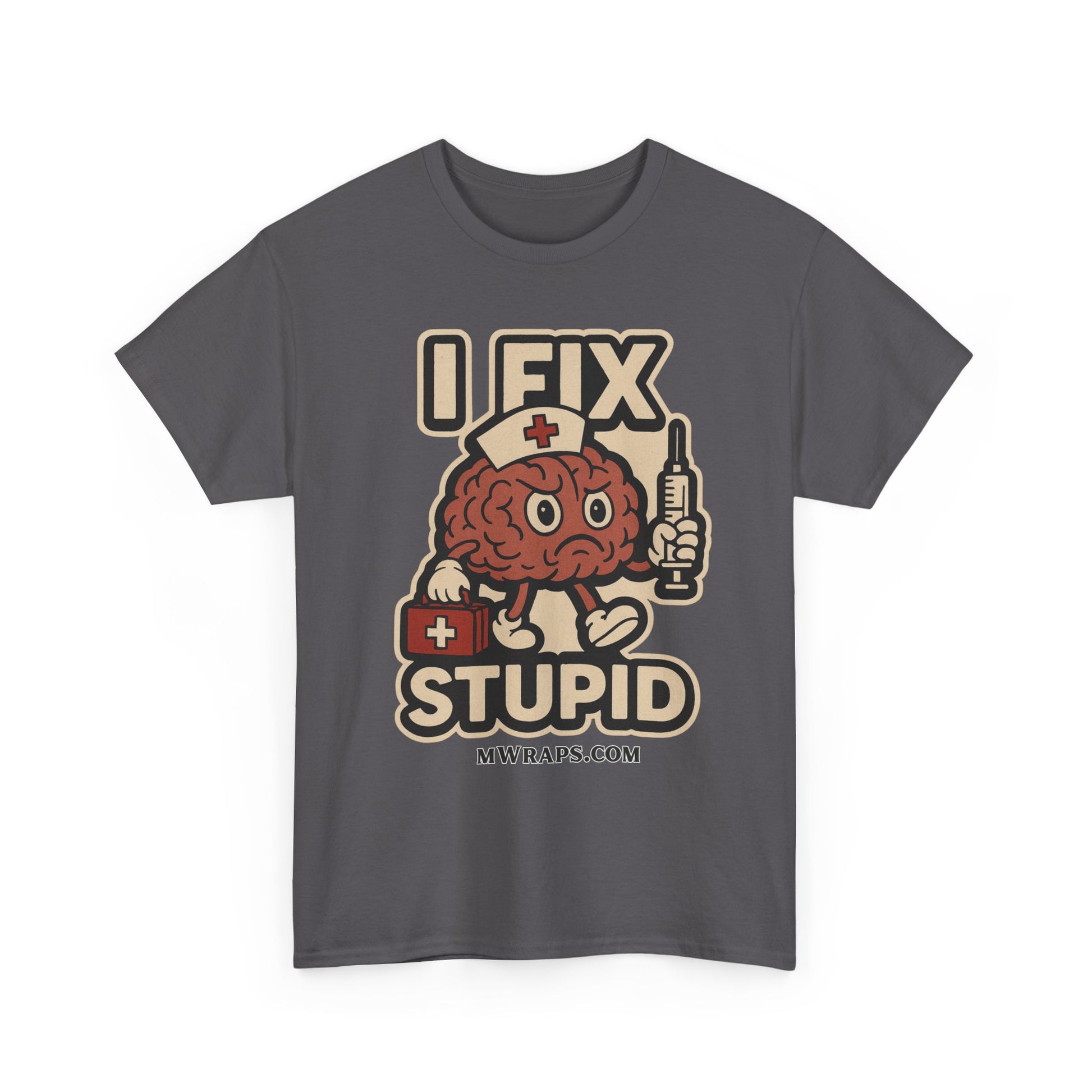"I Fix Stupid" w/ graphic T-Shirt – Funny Medical Uniform Tee for Nurses, Paramedics & First Responders