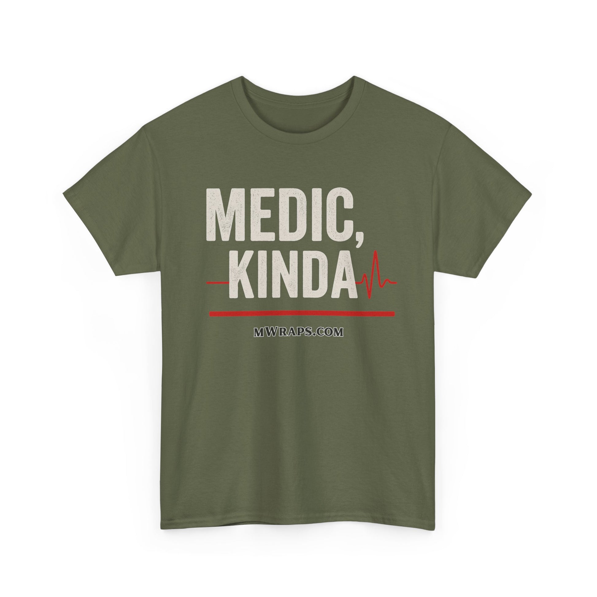 "Medic, Kinda" Funny EMT Nurse Paramedic T-Shirt with Heartbeat Line Graphic