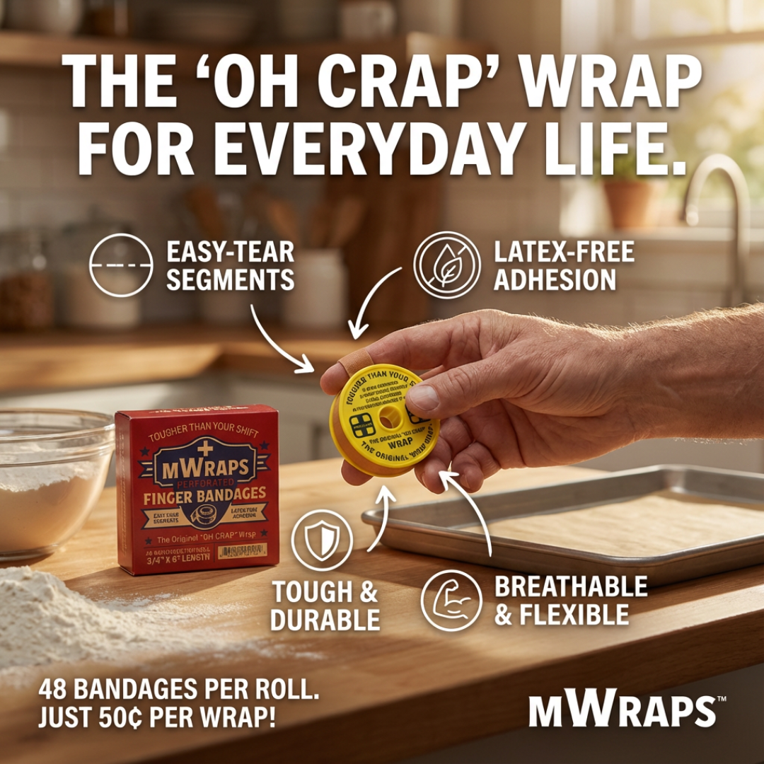 “Working in a kitchen means heat, water, and nonstop movement. mWraps doesn’t peel off like normal bandages — it stays tight even after hours of washing dishes and prepping food.”