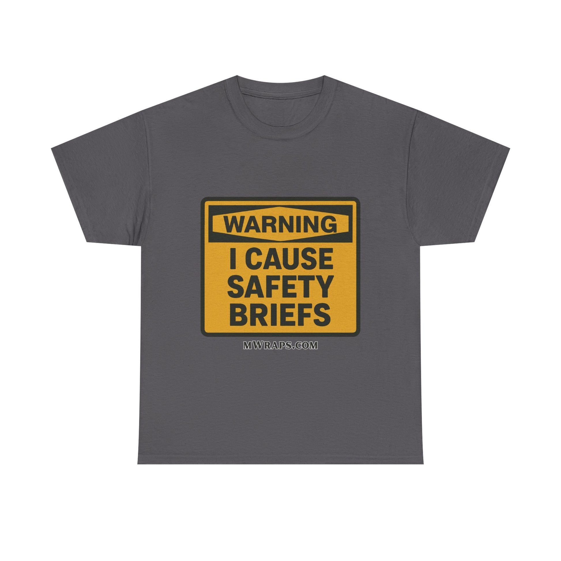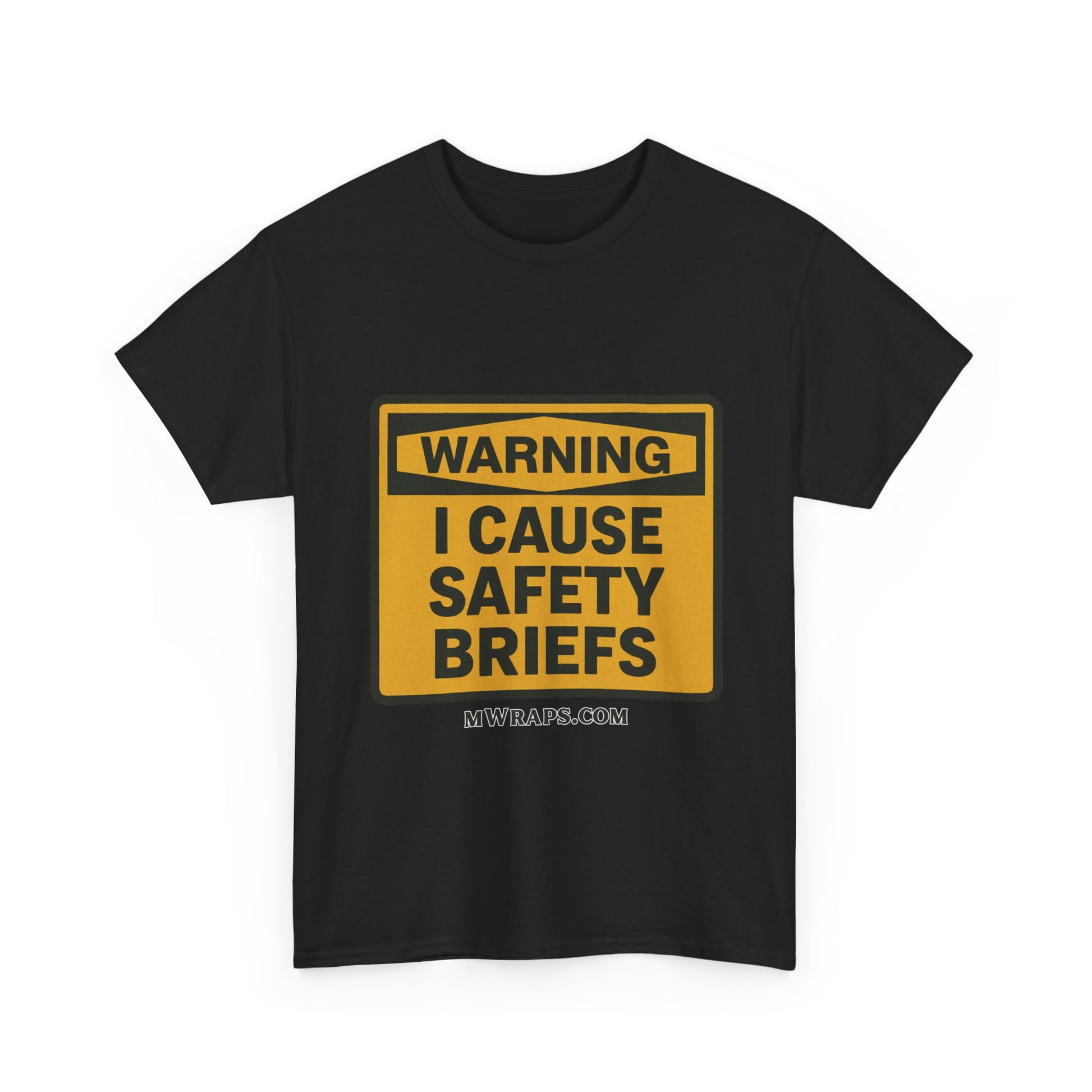 "WARNING I Cause Safety Briefs" T-Shirt Workplace Humor Style Graphic Tee for Men & Women